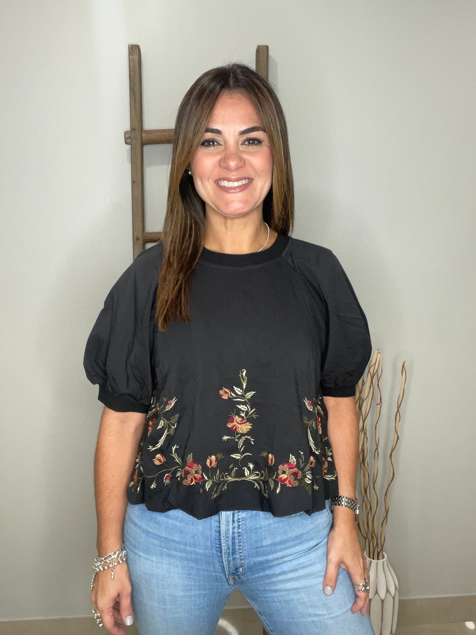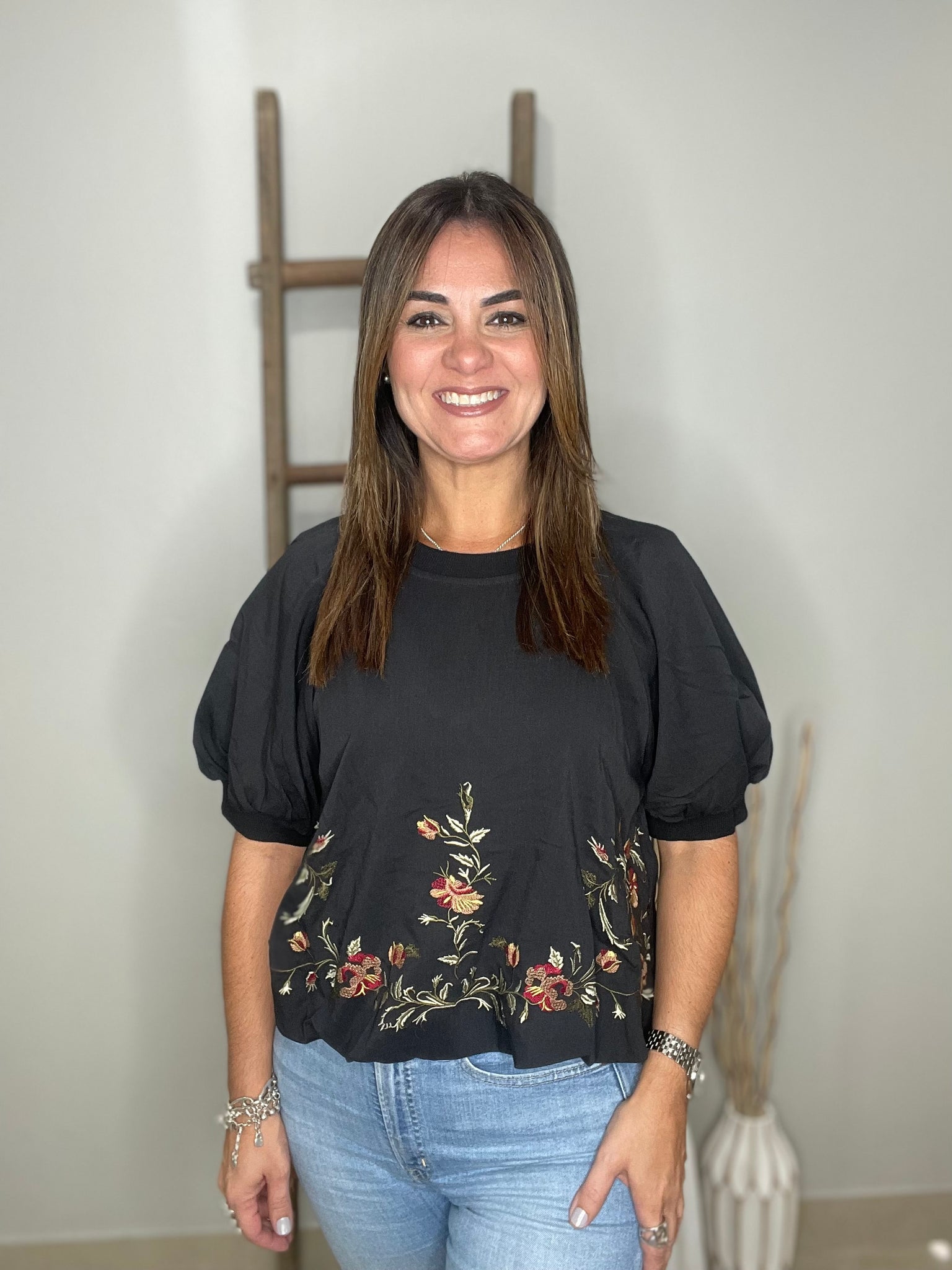 Flower detail embroidered top