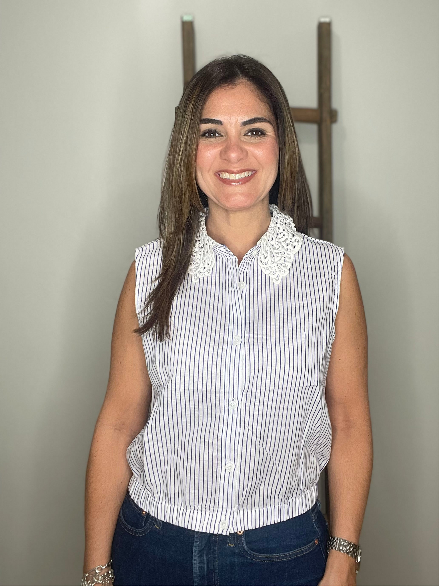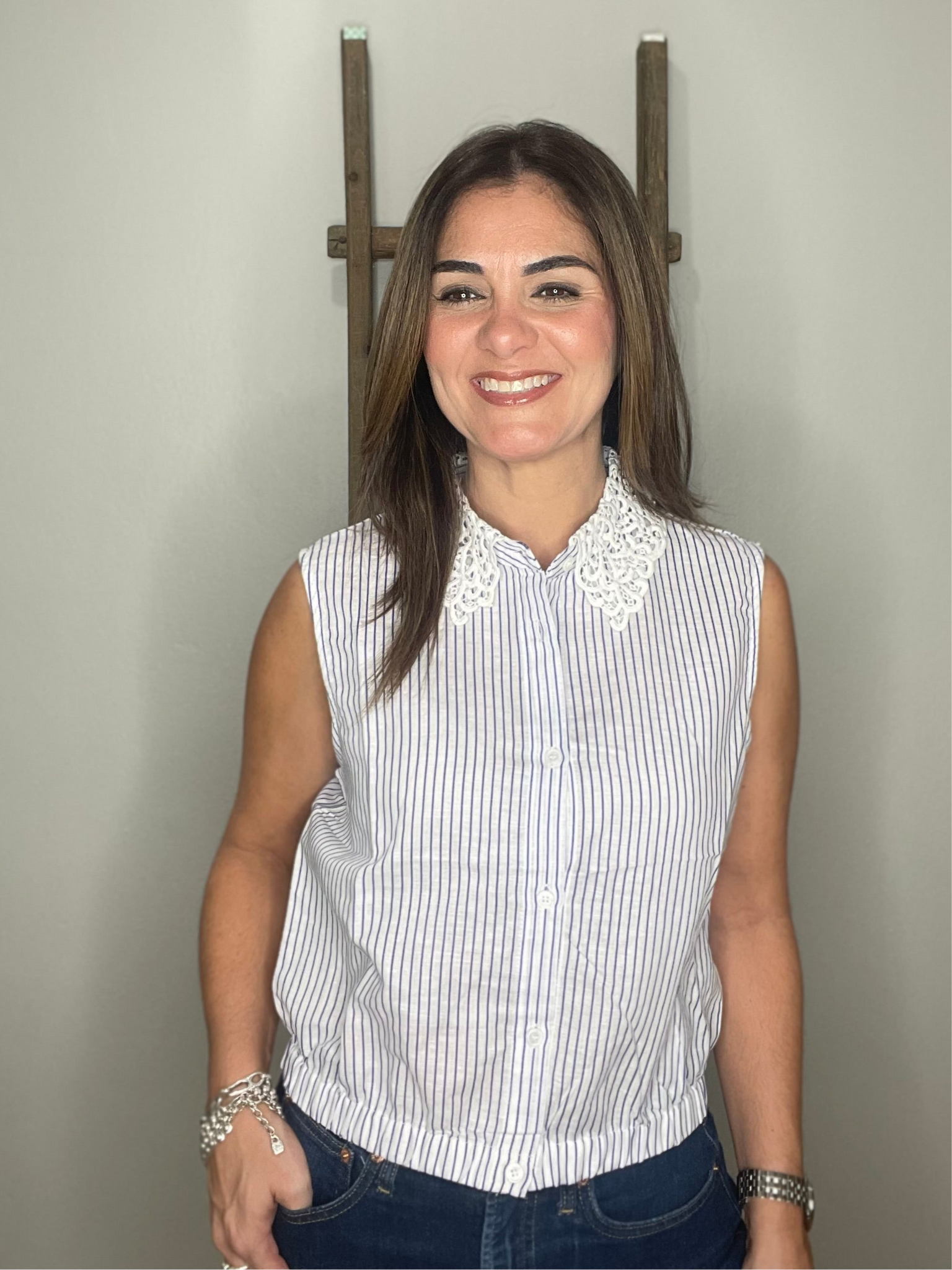 Cropped Striped Sleeveless Shirt With Lace Collar