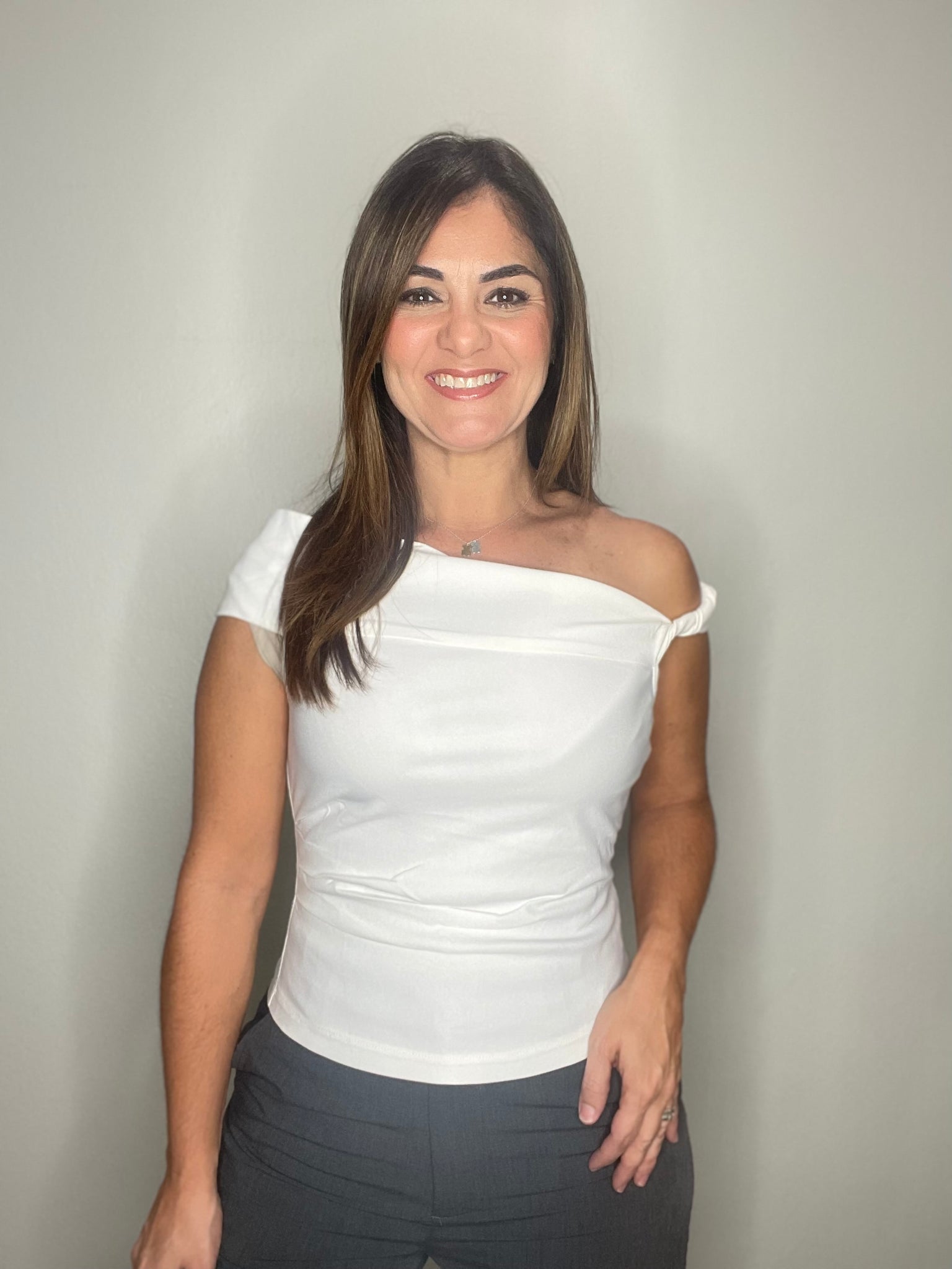 Solid off shoulder top with one shoulder twist strap detail. Fitted silhouette with fold over neckline wrapping around the shoulders.