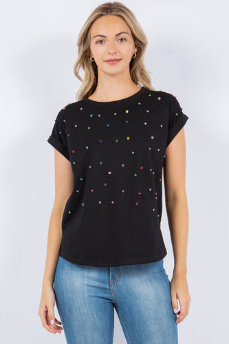 STONES STUDDED T-SHIRT - Black/Stones
