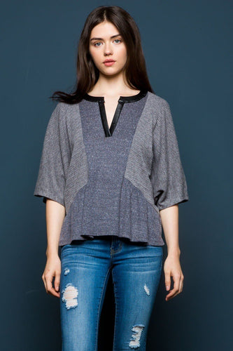 Contrast Dolman Top with Leather Neckline